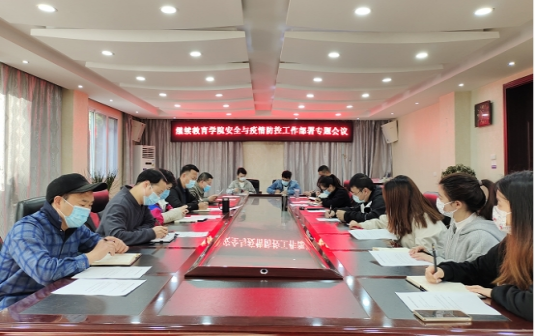4月7日上午,继续教育学院在二楼会议室召开安全与疫情防控工作专题部署会议,会议由学院党委书记肖青民主持,全体教职工和弘成科技发展有限公司全体工作人员参加了会议。